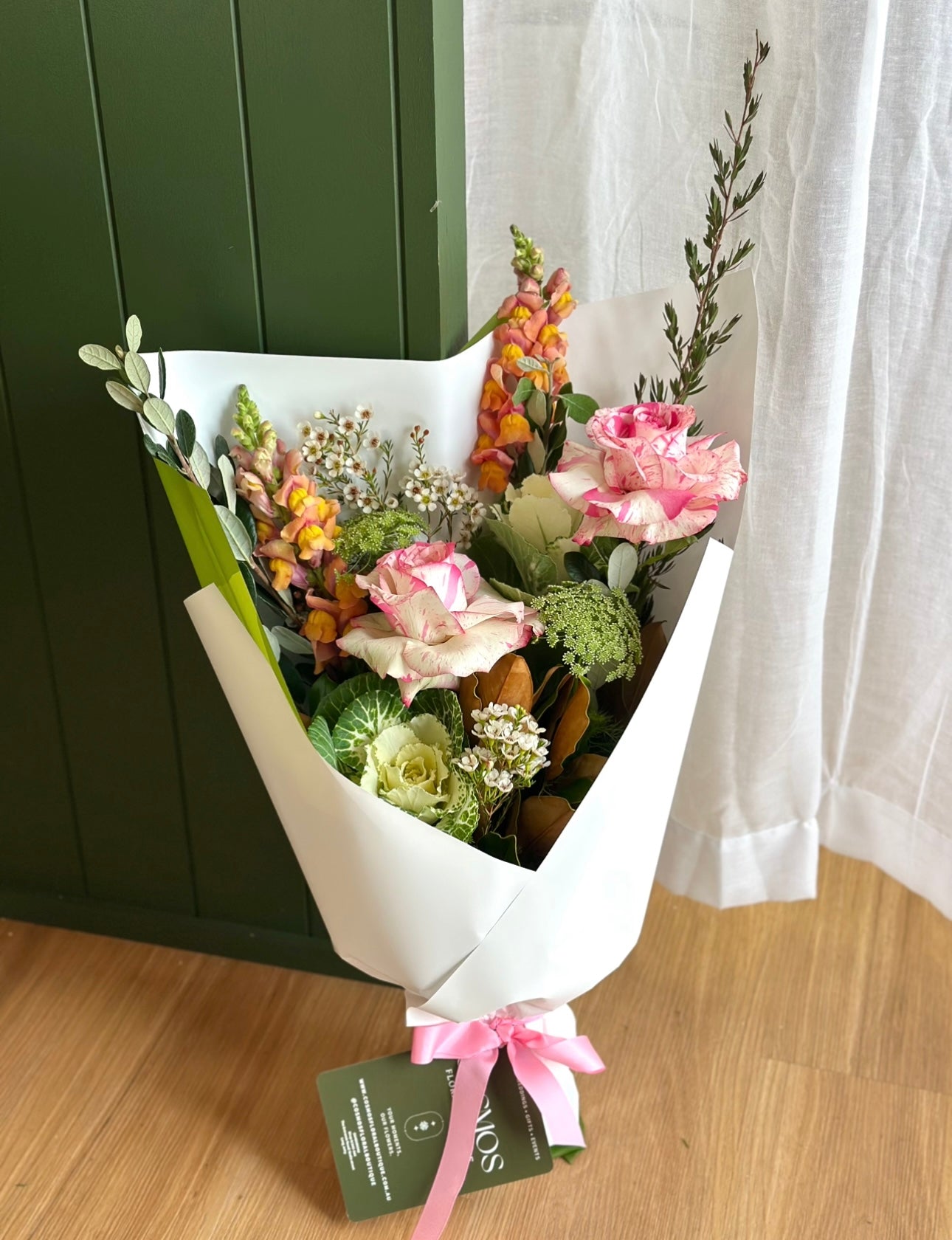 Please note flowers may not be the exact same as the example photo as flowers are seasonal and supply may be limited at times. Every effort is taken to ensure the bunch is similar to what is pictured. Some flowers may vary in colour, and type however will be substituted as best as possible with maintaining the design of the bouquet.
